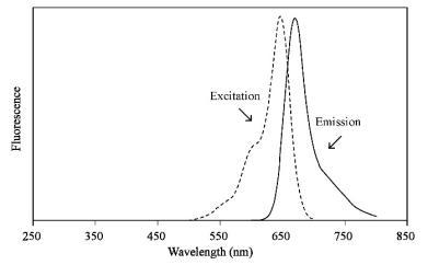 注:红色光激发,荧光显微镜滤光片可以选择 Cy5 滤光片;流式细胞仪选择 RL1(FL4)通道。