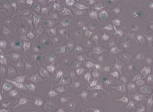 图 1 HeLa 细胞衰老效果图。(左)阴性,(右)阳性